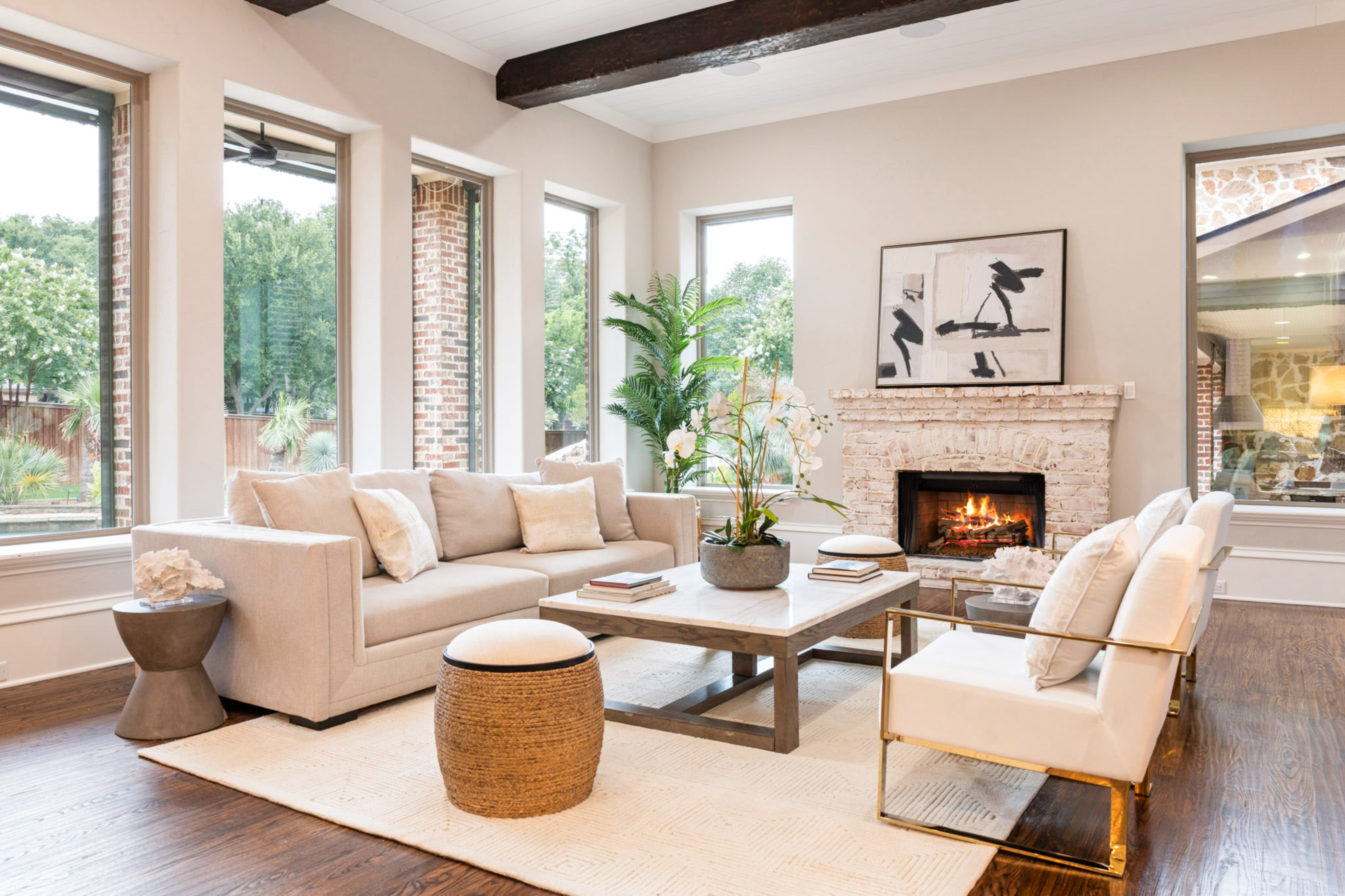 An amazing opportunity on this newly completed full-home remodel in the exclusive gated lake community of Point Noble. Situated on a 1-acre private cul-de-sac lot, this 7-bedroom estate and separate apartment suite was reimagined for luxury living with everything today’s buyers are looking for. Added features include a regulation indoor basketball court with three adjustable hoops and electric scoreboard, which can second as a regulation volleyball or pickleball court. A fully equipped workout gym with large storage and bath connect directly to the basketball court and large veranda for seamless workout-to-relaxation. The 20-ft foyer has floor-to-ceiling windows framing the resort-style backyard, where tiered pools, a hot tub, fire pit, covered veranda, outdoor kitchen, and stone fireplace create an entertainer’s dream. A whole-home generator provides automatic backup power to the entire property ensuring uninterrupted comfort. Inside, newly refinished hardwoods flow throughout, and a fully reconfigured chef’s kitchen is equipped with new high-end appliances, oversized island, and designer lighting. The primary suite emphasizes spa-like living with a freestanding tub beside the fireplace, an 11-ft deep steam shower, heated floors, coffee bar, full living room adjoining the sleeping quarters, and two separate dressing areas with ample storage including a hidden closet system. The home’s thoughtful layout features both upstairs and downstairs laundry, dual staircases, and on the main level a private guest suite offers its own spacious walk-in shower and closet. Additional highlights include a recently installed slate roof, top-tier media room, wine cellar, dry bar, private office with bonus workspace, and an additional exterior sport court, full interior paint update, and all covered porches featuring Phantom screens. With room for additional 8-car parking, this home offers privacy, luxury, and modern ease in one of the area’s most tranquil lake communities.